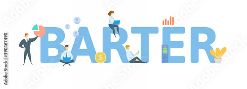 Barter. Concept with keyword, people and icons. Flat vector illustration. Isolated on white background.