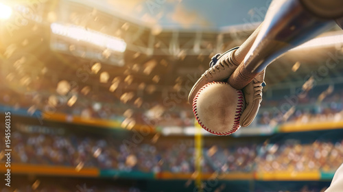 Baseball bat hitting home run with dynamic motion during game, sports action and competition concept, athlete swinging for victory in professional match.