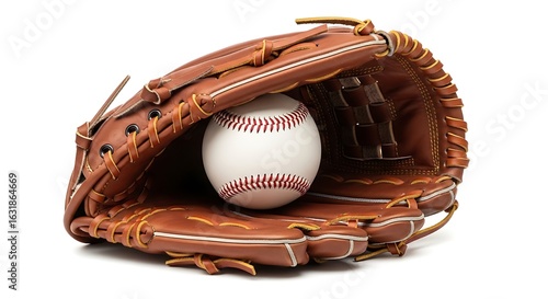 Baseball glove with a ball inside isolated on white background for game and sport concept