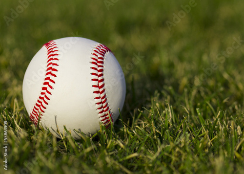 Baseball on the field with green grass