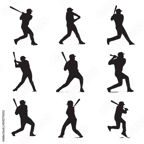 baseball silhouette set, Black & White silhouette set
