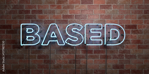 BASED - fluorescent Neon tube Sign on brickwork - Front view - 3D rendered royalty free stock picture. Can be used for online banner ads and direct mailers..