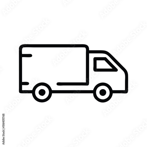 Basic delivery truck icon in black outline, Minimalistic black outline of a delivery truck, symbolizing transportation, shipping, and logistics services in a simple design.