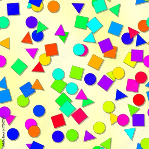 basic geometric shapes symbols scattered on yellow background - seamless pattern