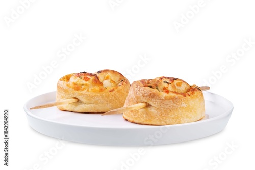 Basil cheese tomato puff pastry hearts for Valentine's day holidays on a white isolated background