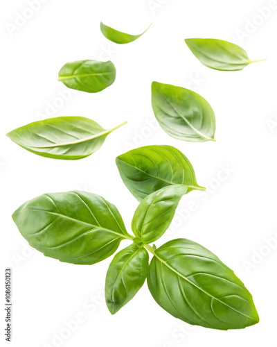 Basil leaves flying isolated on white background as transparent. PNG. AI GENERATED