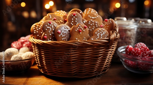 Basket Christmas Gingerbread Cookies Fir Tree , Background HD, Illustrations