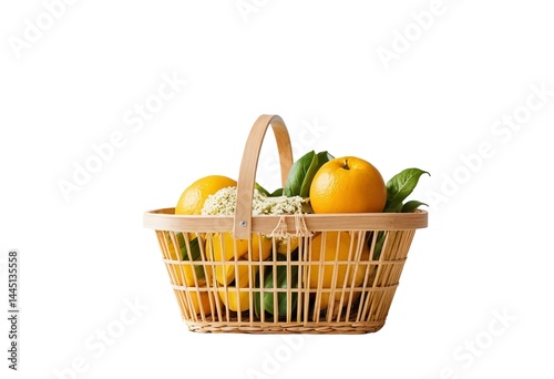 Basket made of eco materials with fruit on isolated background