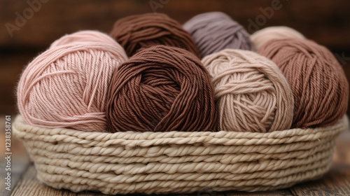Basket of yarn balls in Mocha Mousse and pastel colors