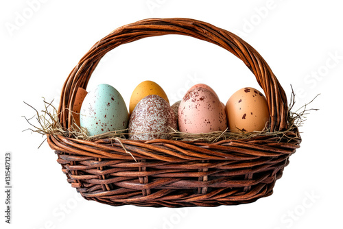 Basket with easter eggs isolated on transparent background