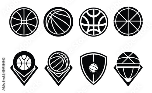 Basketball Icons 8 Unique Black and White Designs for Logos and Branding