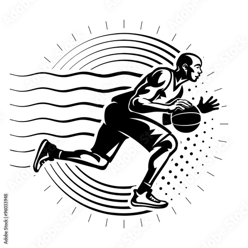 Basketball player. Illustration in the engraving style