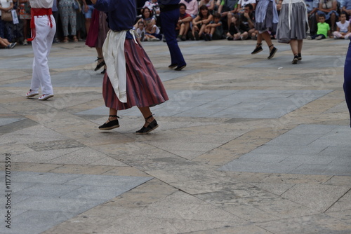 Basque folk dance festival in a square of Bilbao