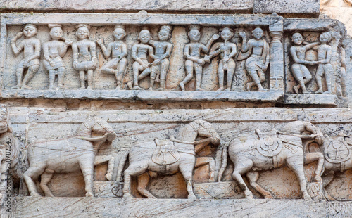 Bas-relief at famous ancient Jagdish Temple in Udaipur, Rajasthan, India