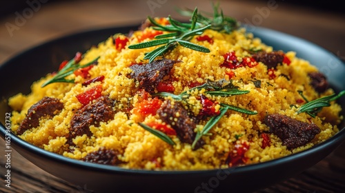 Bassi Salte, a traditional Senegalese dish, features steamed couscous served with tender meat, root vegetables, and fragrant spices, creating a hearty, flavorful, and communal meal.