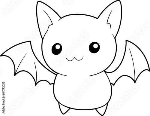 Bat vector illustration. Black and white Halloween Bat coloring book or page for children