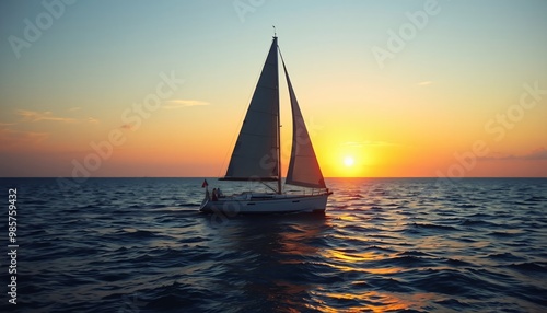 Bateau à voile naviguant sur l'océan au coucher du soleil