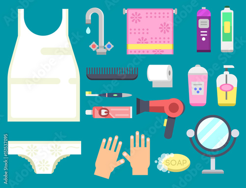 Bath equipment icons modern shower colorful illustration for bathroom interior hygiene vector design.