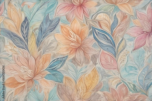 Batik Elegant Floral Pattern with Pastel Tones and Decorative Leaves