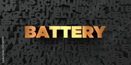 Battery - Gold text on black background - 3D rendered royalty free stock picture. This image can be used for an online website banner ad or a print postcard.