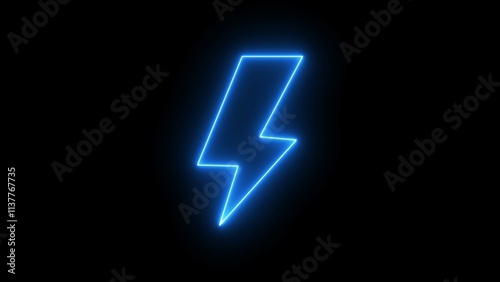 Battery charging with a power bolt icon. Glowing neon Charging flashlight icon on black background.
