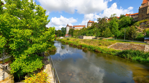 Bautzen in der Oberlausitz, Panorama mit Burgwasserturm, Michaeliskirche und Spree