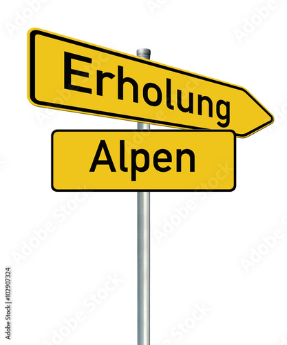 Bayern 12 / Wegweiser "Alpen, Erholung", freigestellt