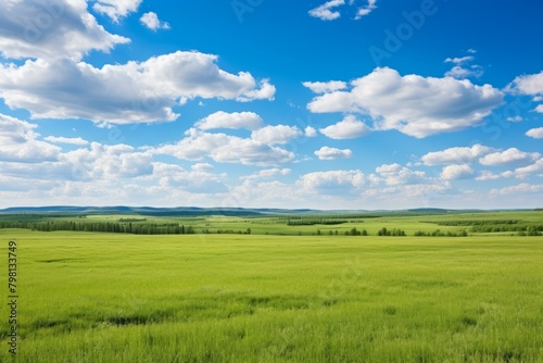 b'Beautiful green grassland scenery under blue sky and white clouds'