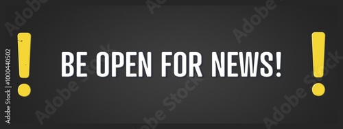 Be open for News. A blackboard with white text. Illustration with grunge text style.