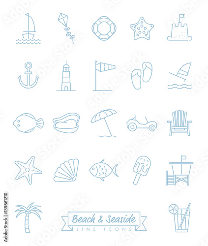Beach and Seaside Line Icons Vector Set