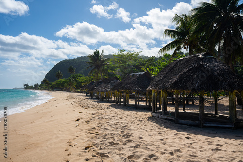 Beach fale's on a white sand beach on Lalomanu, Samoa