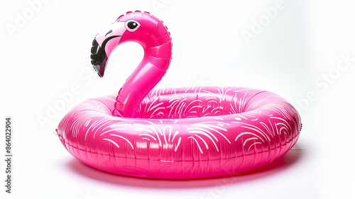 Beach flamingo. Pink pool inflatable flamingo for summer beach isolated on white background. Trendy summer concept