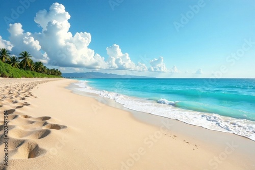 Beach landscape with sandy shore and ocean horizon, ocean, sand