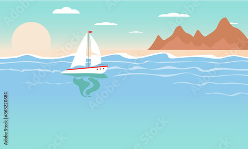 beach landscape with yacht