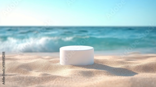 Beach Podium Display on Tropical Summer Sand and Turquoise Sea Background