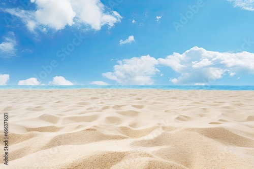 Beach Scene: Closeup of Sand on Beach with Blue Summer Sky - Captivating Coastal Beauty