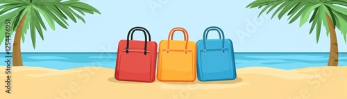Beach vacation bags, ocean view, palm trees