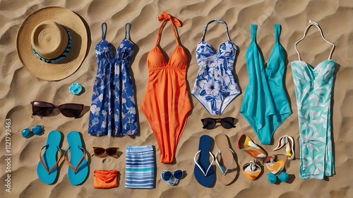 Beachwear Summer Outfit Laid Out On Sandy Beach