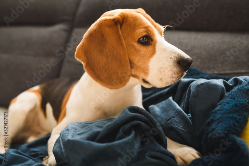 Beagle dog sad eyes big nose. Portrait, Copy space