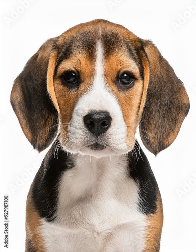 ビーグルの子犬のポートレート(Beagle puppy portrait on white background)