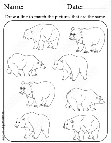 Bear Puzzle. Printable Activity Page for Kids. Educational Resources for School for Kids. Kids Activity Worksheet. Match Similar Shapes