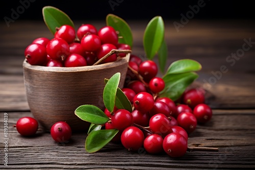 Bearberrys on wooden background. Fresh Bearberry fruits
