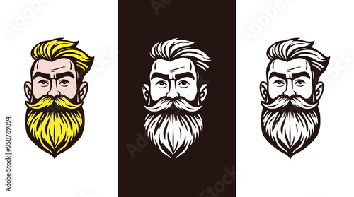 Beard men face vector mascot illustration. Hair style barber shop logo. Editable men logo concept. long beard gentleman vintage artwork