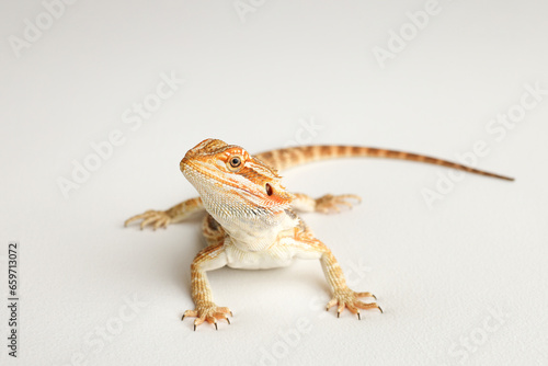 Bearded dragon, pogona vitticeps, isolated on white background, Tiger Pattern Morphs. Professional studio macro photography on isolated white background