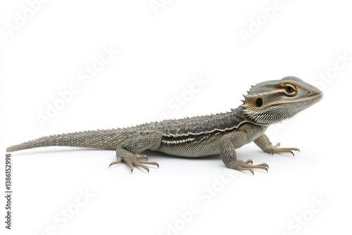 Bearded Dragon Standing Alert on White Background Profile Shot