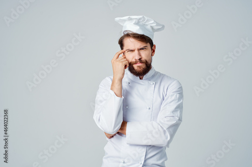 bearded man Chef uniform Cooking emotions posing studio
