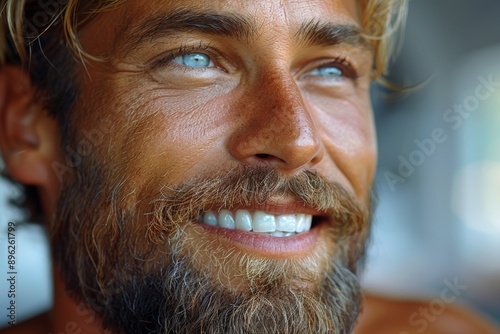 Bearded man flashing a big smile, highlighting his white teeth