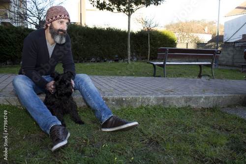 bearded man with hat and dog