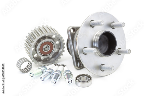 Bearing and ignition plugs for car isolated on white, automotive part