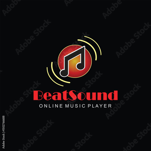 BeatSound Music Player Logo, Online Music App Icon, Musical Note Soundwave Symbol, Digital Audio Player Emblem, Streaming Music Service Design
